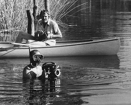 Fisherman, photographer Noel Pascoe, reels in underwater cameraman, Larry Zetlin.